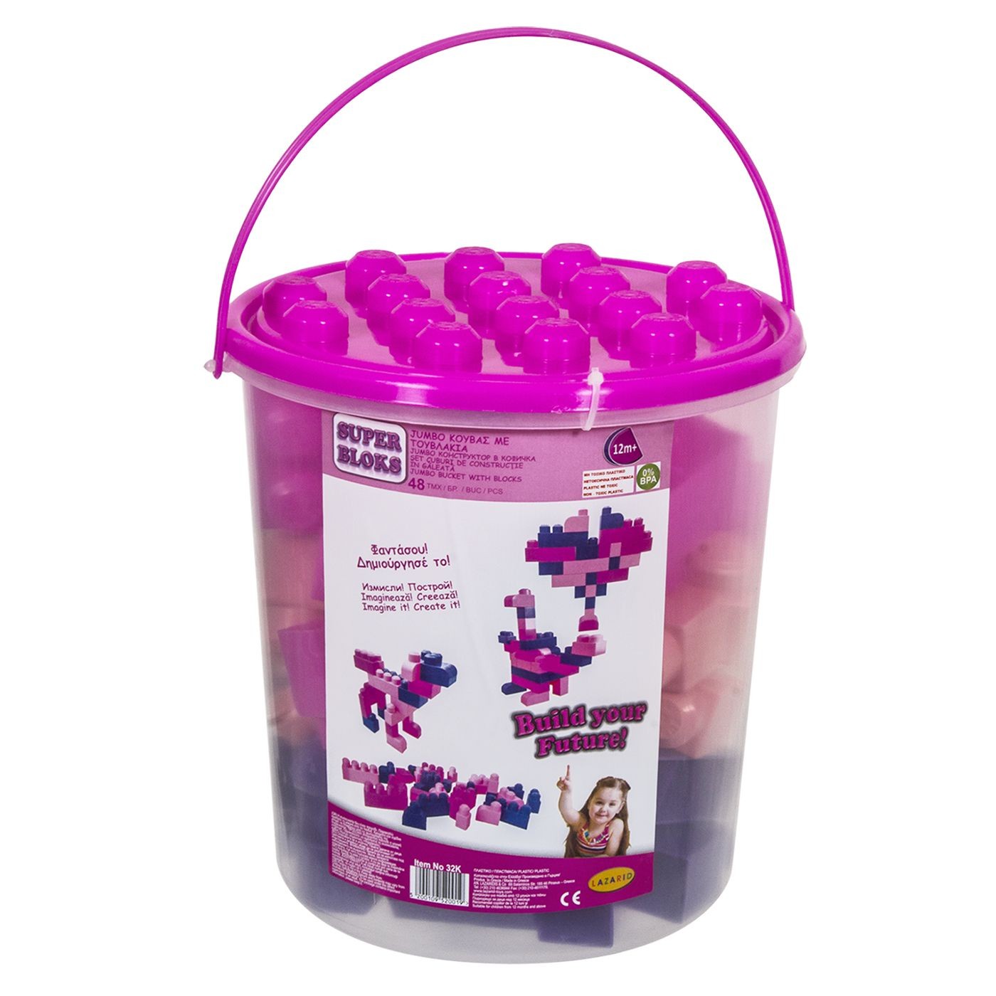 Κουβάς με 48 Μεγάλα Τουβλάκια για Κορίτσι ø25x26cm